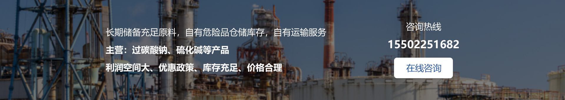 我公司自有危險(xiǎn)品儲(chǔ)存?zhèn)}庫(kù),自有的運(yùn)輸隊(duì)伍和三位一體的運(yùn)營(yíng)模式,使我公司在市場(chǎng)中有著廣闊的發(fā)展前景和拓展空間。我廠生產(chǎn)及代理產(chǎn)品主要有:五水偏硅酸鈉、聚丙烯酰胺、硫化鈉、活性炭、磷酸三鈉、純堿等......